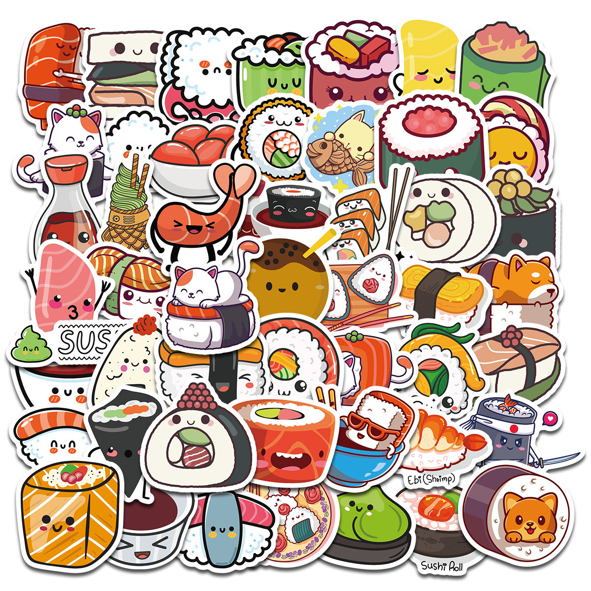 50 枚の寿司落書きステッカー、国境を越えた新しい製品、かわいいスタイルのクリエイティブな食品ステッカー、パーソナライズされた装飾防水ステッカー