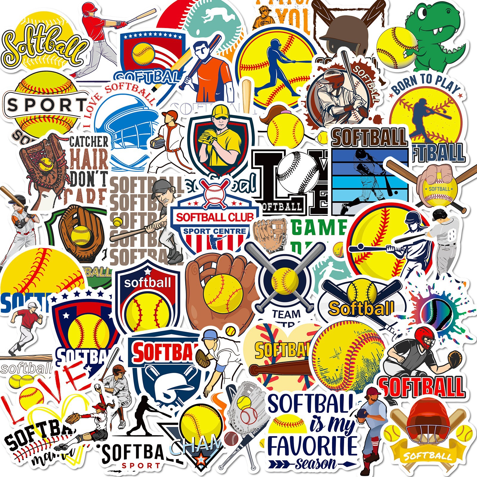 50枚の黄色のソフトボールのステッカーのクロスボーダーのSoftball Stickersのスケートボードのギターのスーツケースの防水のステッカー