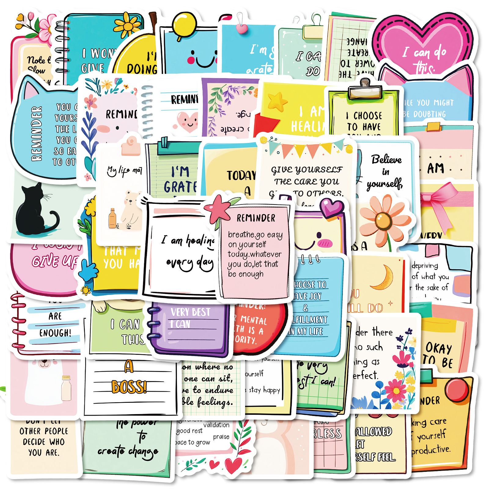 国境を越えた新しい自己肯定的な英語落書きステッカー 50 枚、小さな新鮮なインかわいいテキストラベルハンドブックステッカー