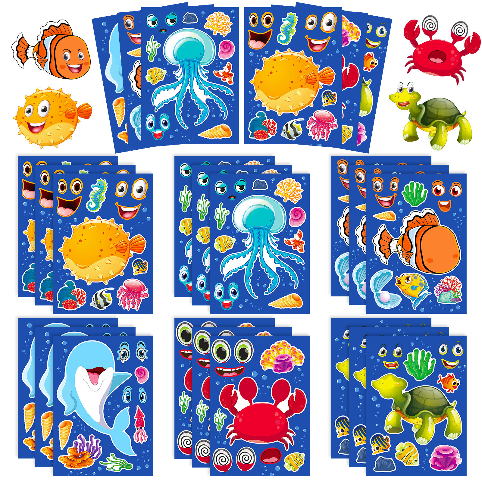 6 枚/パック海洋生物顔変更ステッカー外国貿易新製品子供のパズルおもちゃ繰り返し教育ステッカー