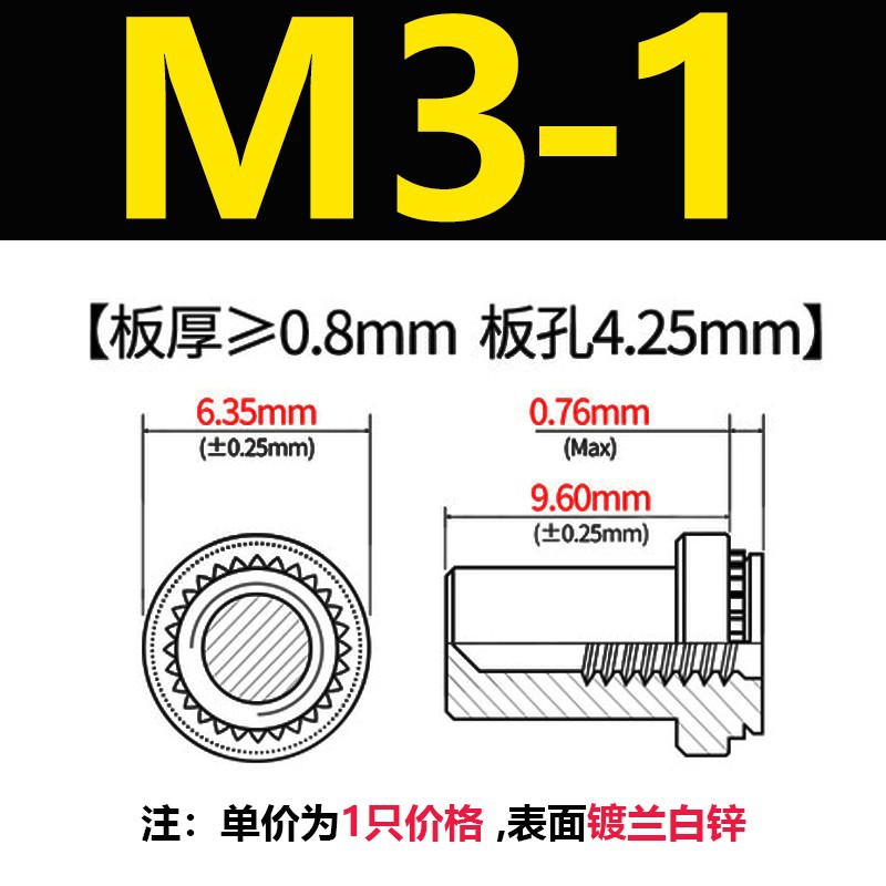 リベットナット亜鉛メッキ板金卯キャップエンボスナットb圧板ナットm 2m 2.5m 3m 4m 5