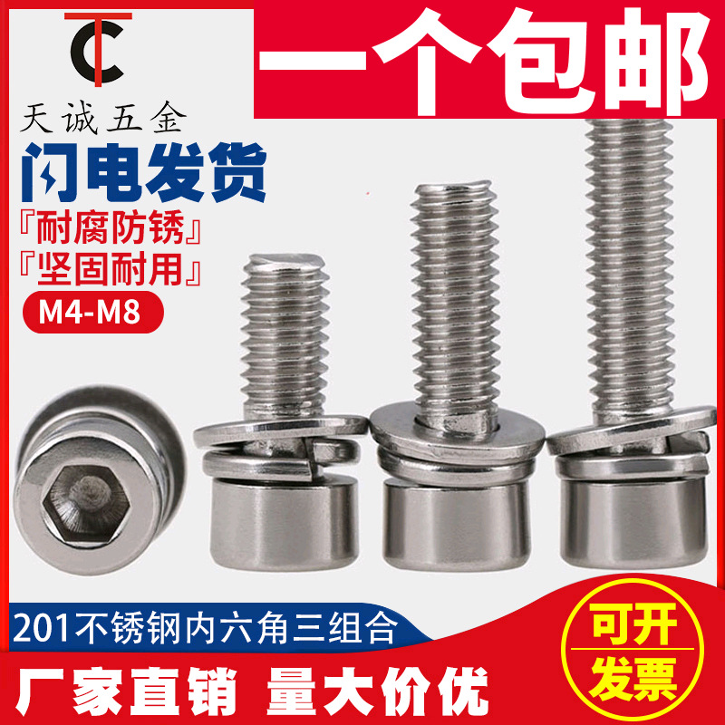 M 4m 5m 6m 8 201ステンレス三組み合わせ六角ネジ円筒ヘッドには、平弾パッドのボルトが付属しています。