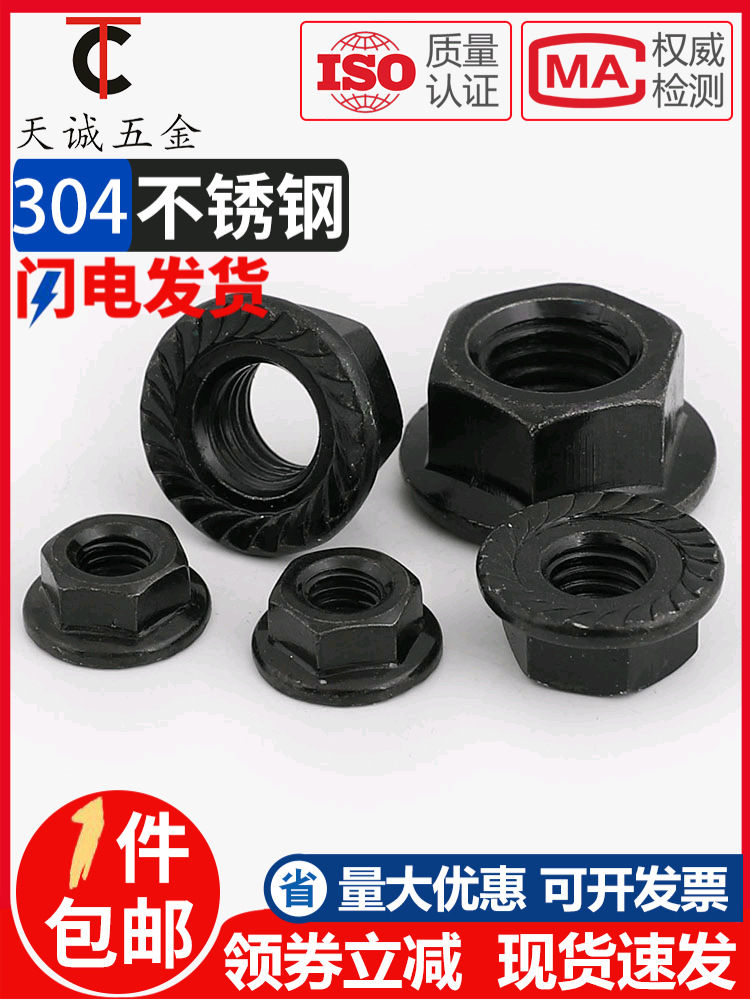 ブラック304ステンレスフランジナット滑り止めナット六角パッド付き緩め防止ねじ花歯M3M4M5-M16