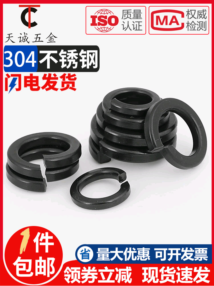 黒304ステンレス鋼パッドスプリングワッシャー黒髪ガスケットメッキ黒亜鉛スプリングgb93 M2M3M4-M20