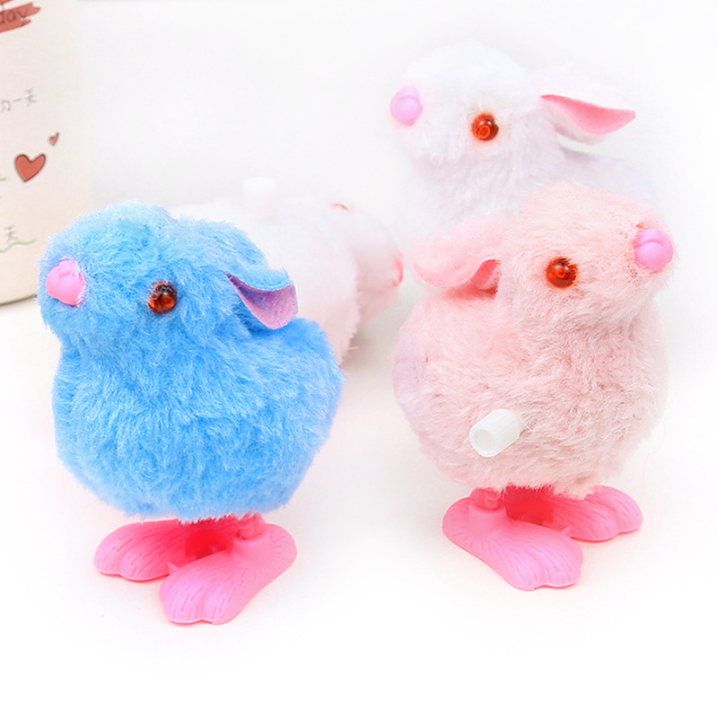 上鎖のぬいぐるみのウサギのぜんまいのおもちゃはウサギの露店を跳んで子供のぜんまいの動物のノスタルジックなおもちゃを売ります。