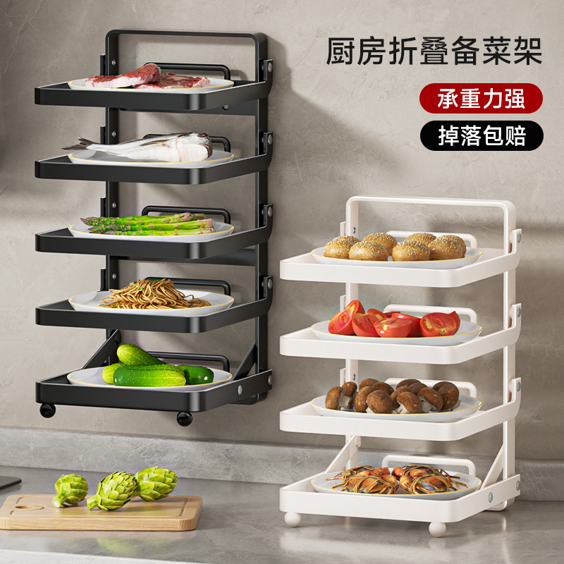 台所の野菜棚多機能おかず皿多層食器収納棚壁掛け折り畳みテーブル棚