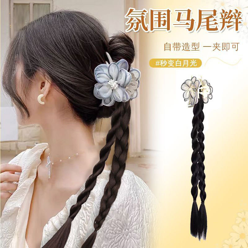 軽やかなかつらは花を挟んでお下げをします。女性の新中国風は自然に甘いです。
