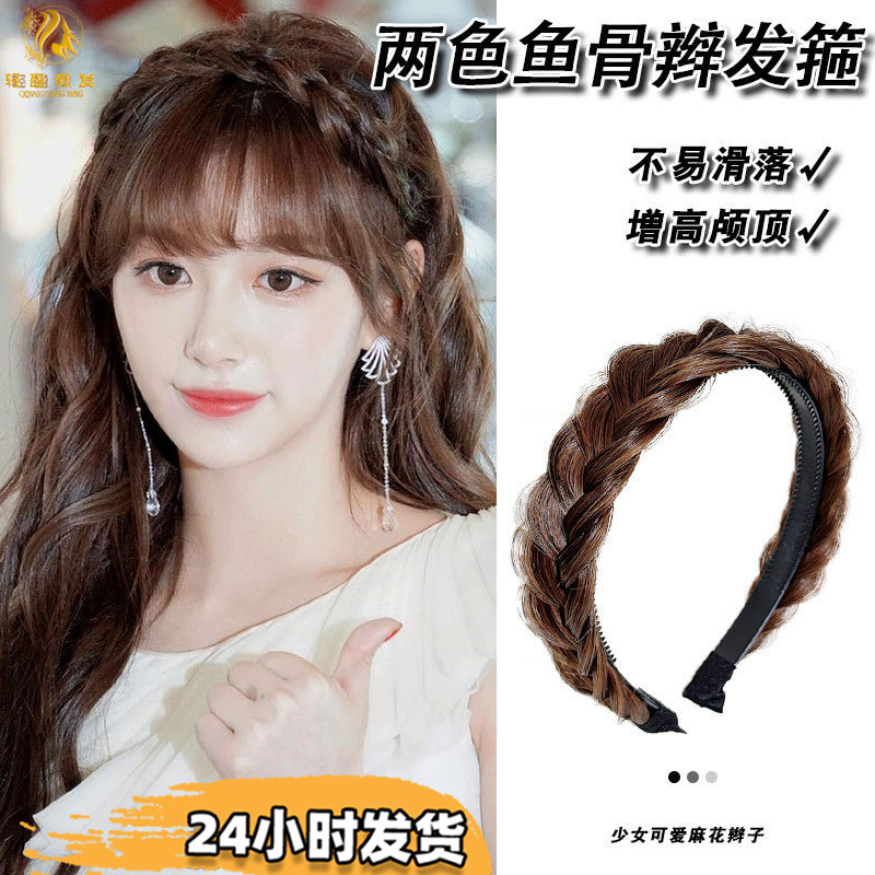 2024新作かつら麻花お下げカチューシャ一体女性カチューシャ