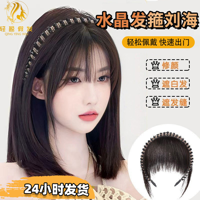 髪のカチューシャ前髪一体式の新しいかつらの女性の額の鬢の角は白髪の自然なシミュレーションの髪の空気の前髪を覆います。