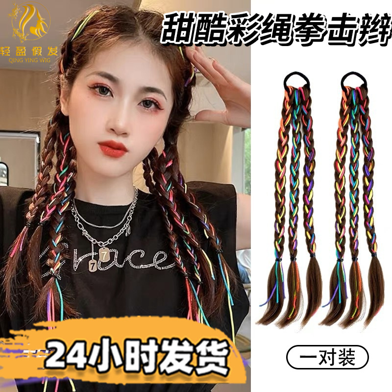 カラーロープボクシングのかつらのお下げのギャルの甘いクールな個性の高温の糸の手作りのお下げの源の工場の現物は安定しています。