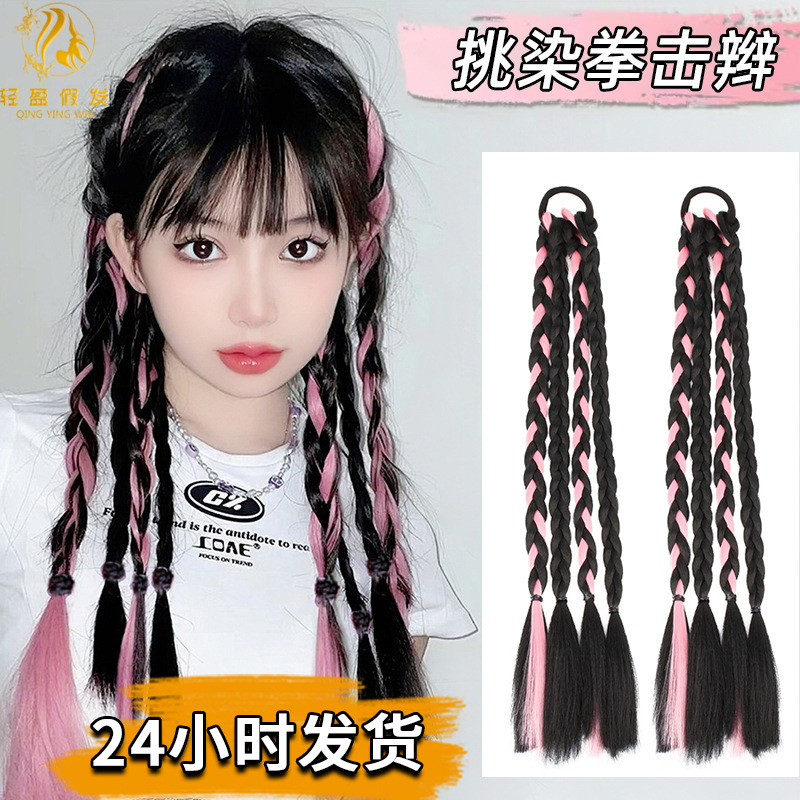 ボクシングのお下げのかつらの女性の長い髪の高いポニーテールのお下げの甘い女の子の汚いお下げの長いお下げは色の麻の花のお下げのかつらを染めます。