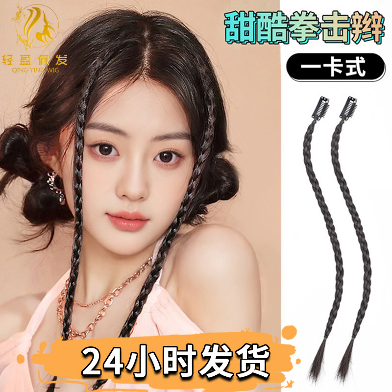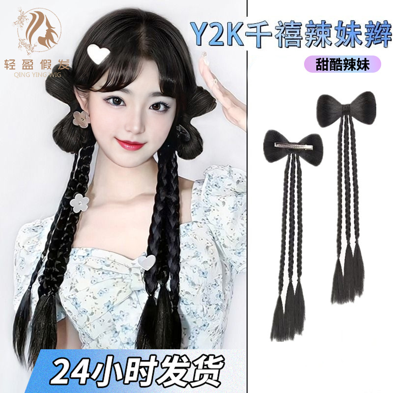 メーカーの商品の供給源の直接販売のかつらの女性の千年のギャルの蝶結びのクリップの頭飾りのシミュレーションは麻の花のお下げの双馬尾を編みます。