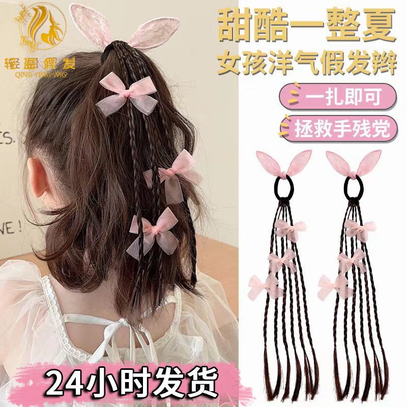 かわいい蝶子供の髪ひもかつら麻花お下げ皮筋少女高馬尾蝶ネクタイ髪飾り