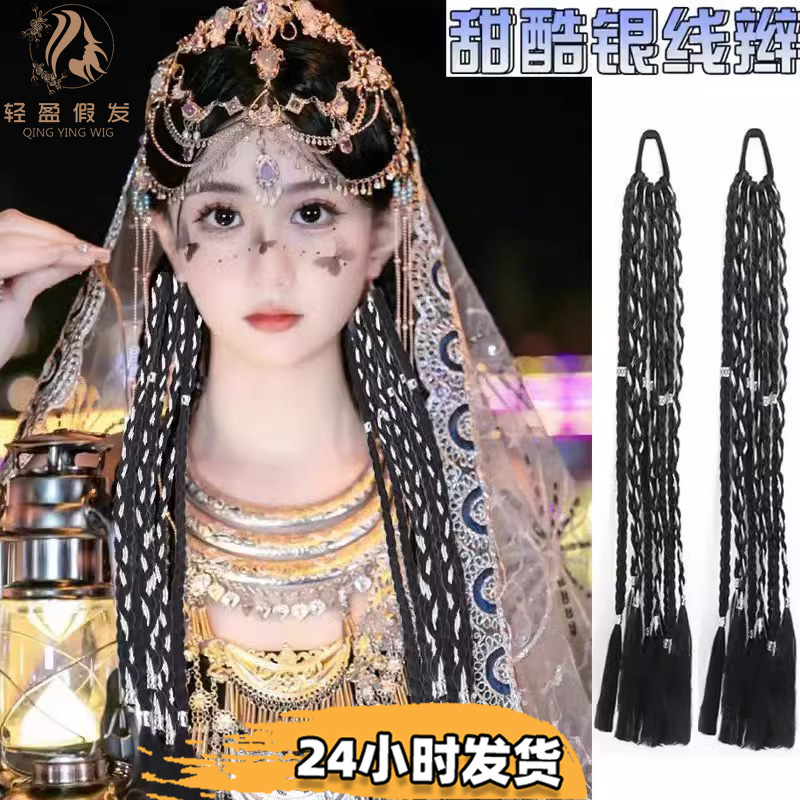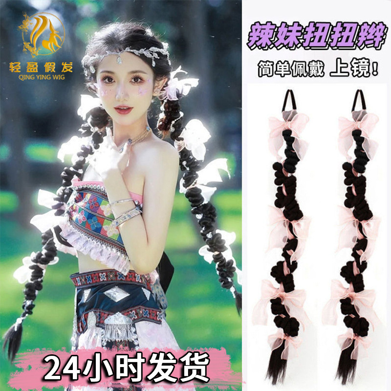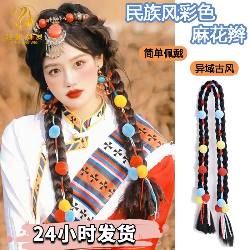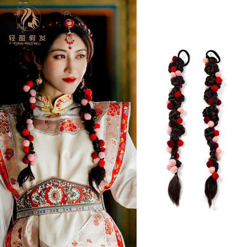 チベット式カラー麻玉お下げかつらポニーテール女性異域古風民族風チベット毛玉麻花お下げポニーテールかつら