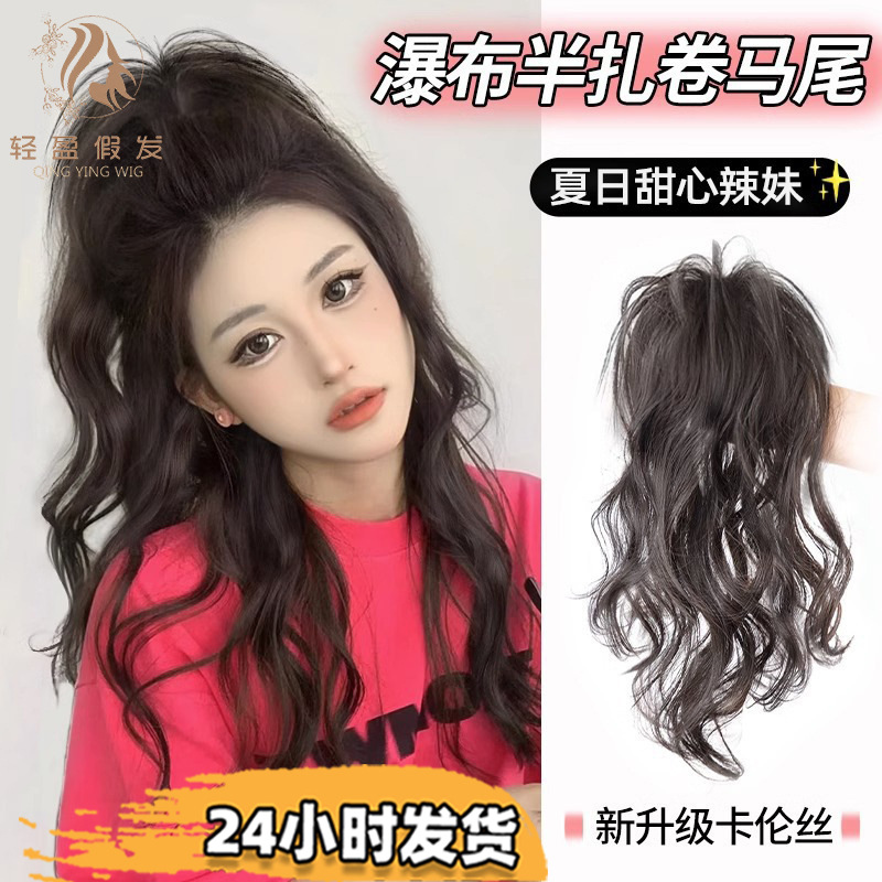 かつらの女性の長い髪のシミュレーション少女感の高い馬尾のお下げの軽い鶏の巣の滝の半は高い馬尾のかつらを刺します。