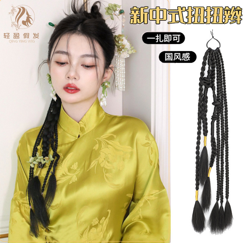 かつらのポニーテールの新しい中国式のねじりのお下げのネットの赤いボクシングのかつらの国風の古風のチャイナドレスの時代のかつらのポニーテール