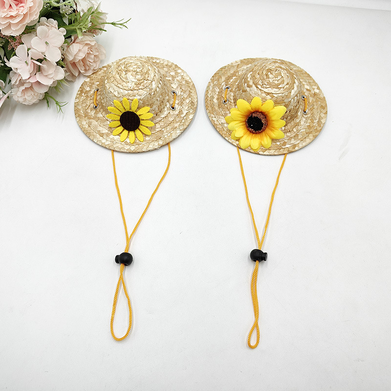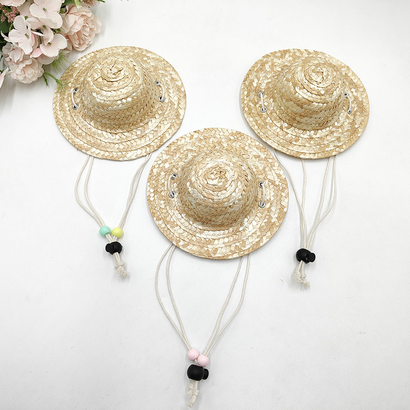 ペット麦わら帽子春と夏の麦わら織りミニ麦わら帽子レトロ農家調節可能な落書き DIY 装飾麦わら帽子