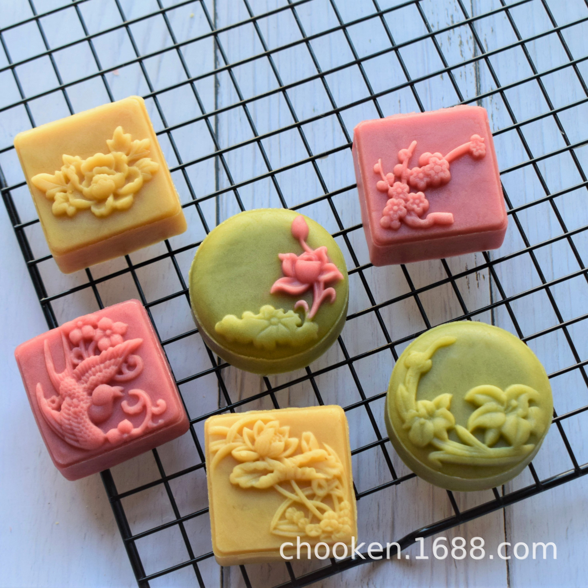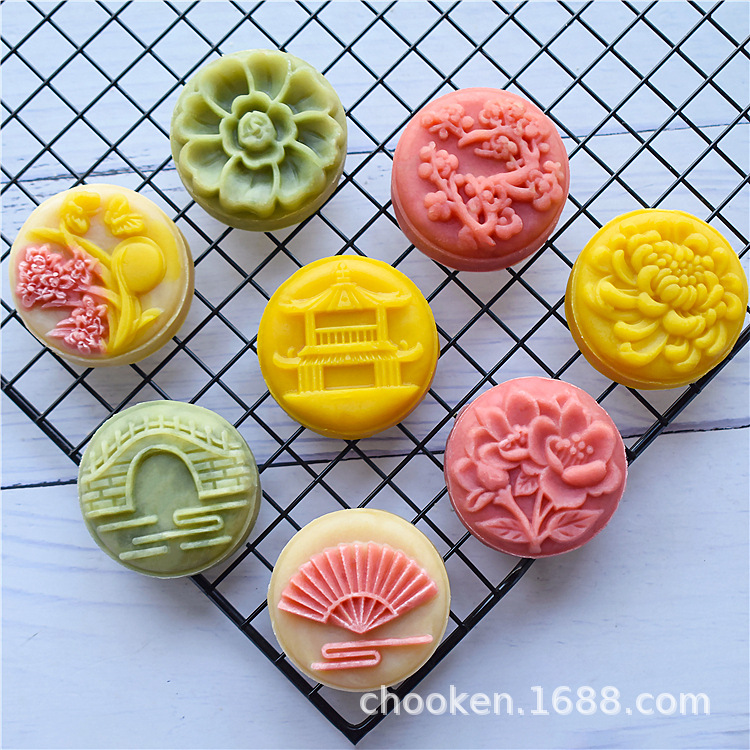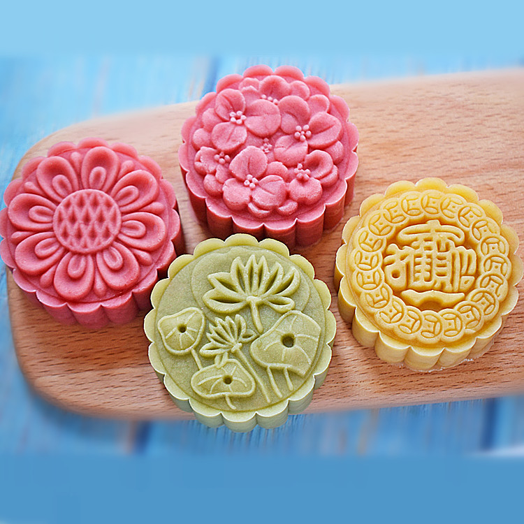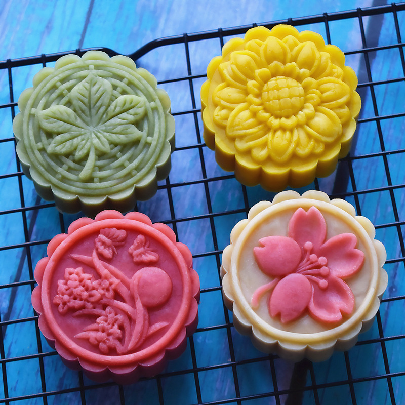 【立体花宴】月餅金型63グラム丸辺手圧型4枚セット日本式mooncakemold