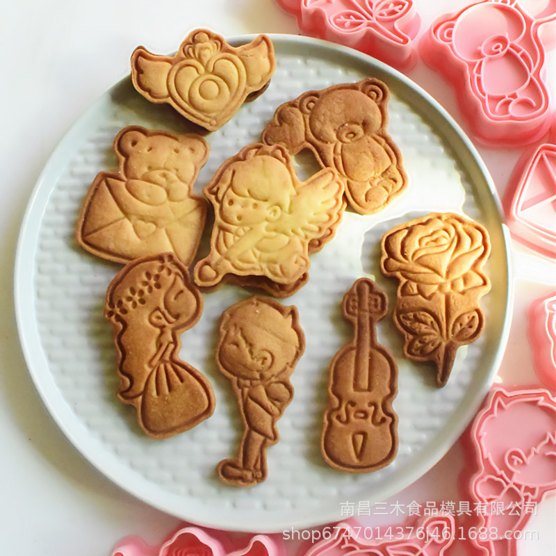 バレンタインクッキー金型3d立体チャーチ結婚式アイシングクッキー押圧式家庭用焙煎プラスチック金型