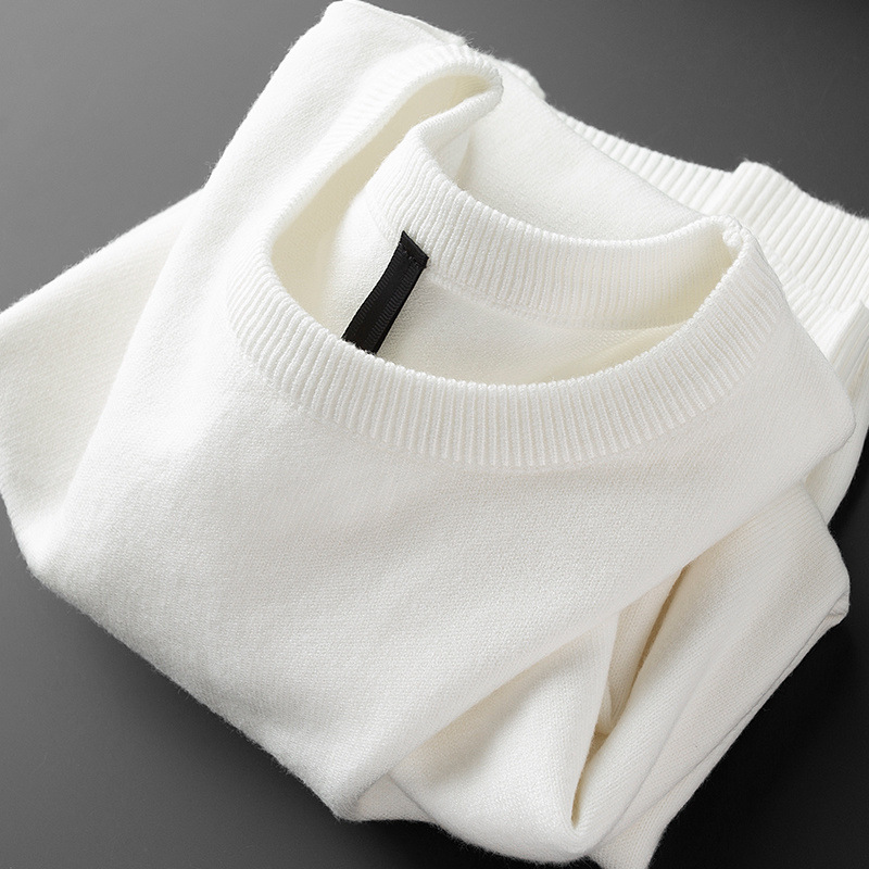 冬の厚手の保温丸襟純白セーター男長袖修身カジュアルカバーの中にニット男