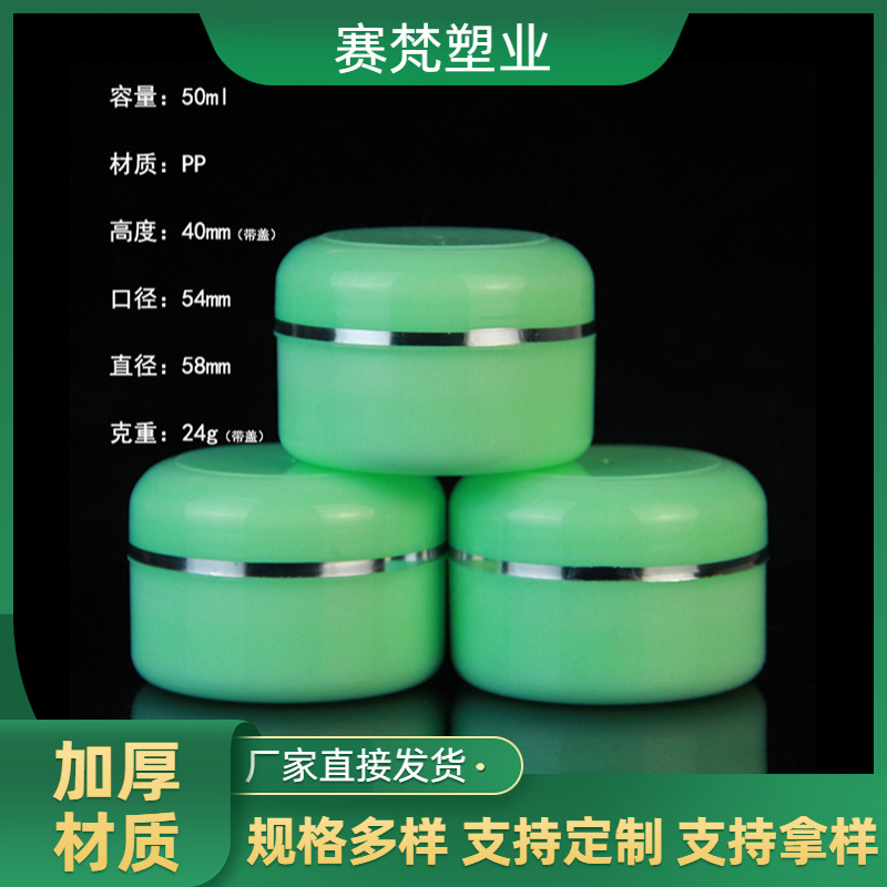 白い緑の丸いクリーム箱クリーム箱ppプラスチック化粧品包装瓶二重50g銀辺クリーム瓶