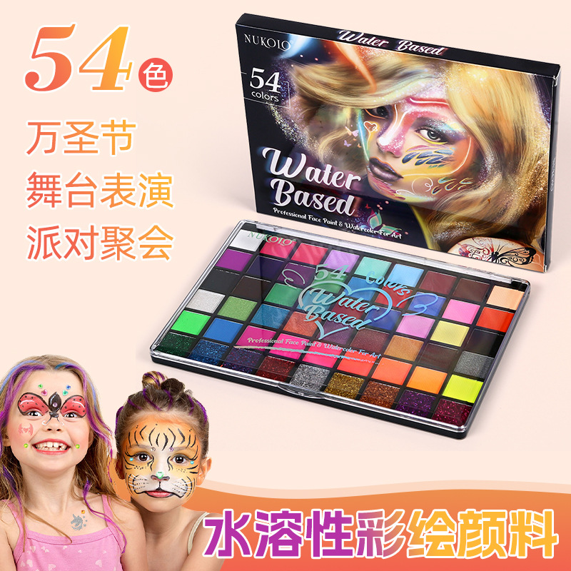 クロスボーダーは54色の水溶性顔カラーを提供します。