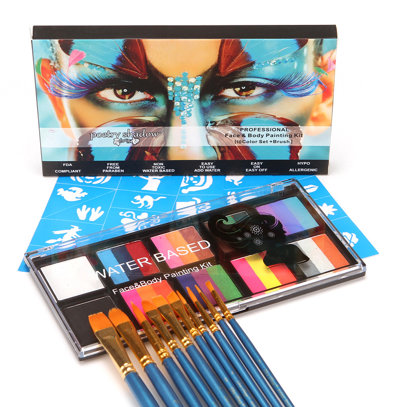顔の虹の絵の具水溶性の人体の絵の具の体はクリスマスの化粧の劇の絵の具の10色の色の箱を描きます。