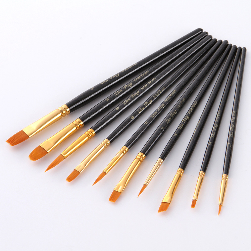 卸売り10本珠光黒ナイロン毛絵筆学生絵画セット水彩丙稀画ブラシ美術用品