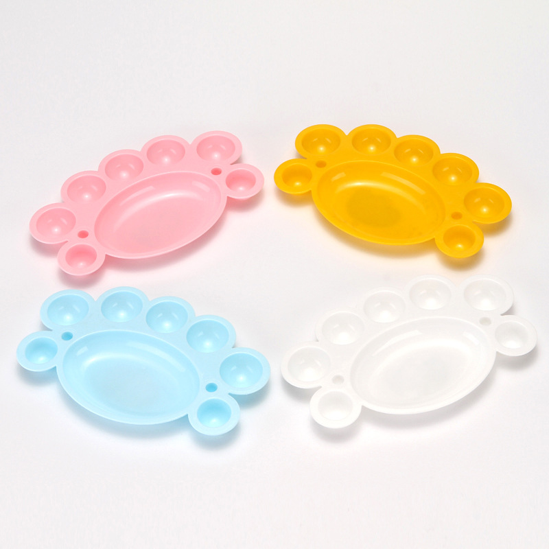 美術用品アニメ7穴の小さい足の形のパレットの水の粉の水彩のアクリルの絵の具の調色の絵画のツール