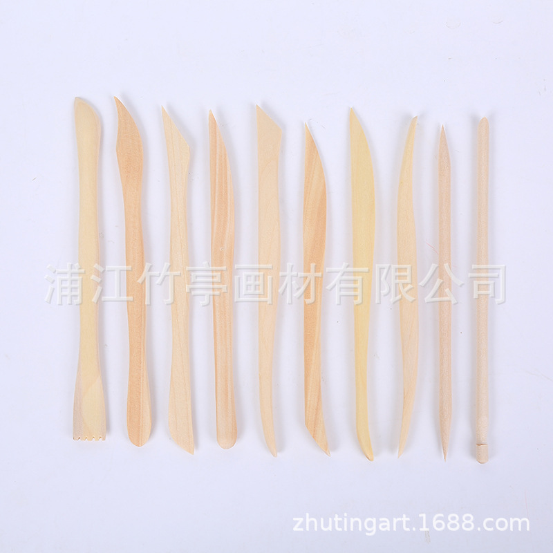10本の細い木の泥の刀の組み合わせの柔らかい陶の泥のプラスチックのツールの粘土diy陶芸の彫刻の泥の彫刻のツールの刀