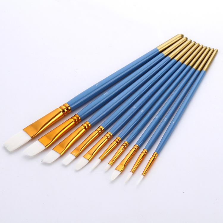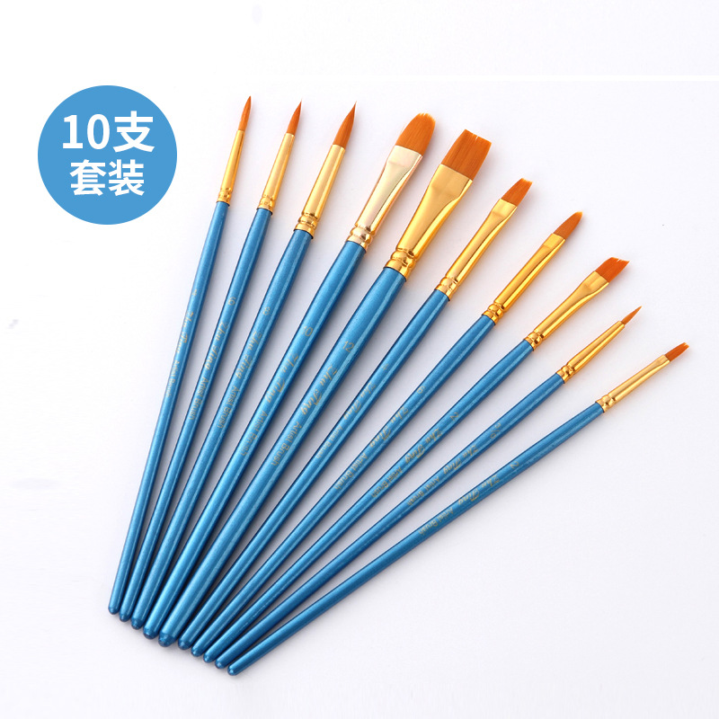 メーカー直販越境10本ナイロン毛セット絵筆セットパールブルー竿水彩絵筆新作