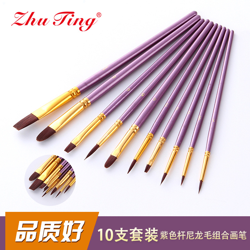 メーカー直販10本バイオレット棒ナイロン毛水彩画ペンアクリル水チョーク画ペンセット