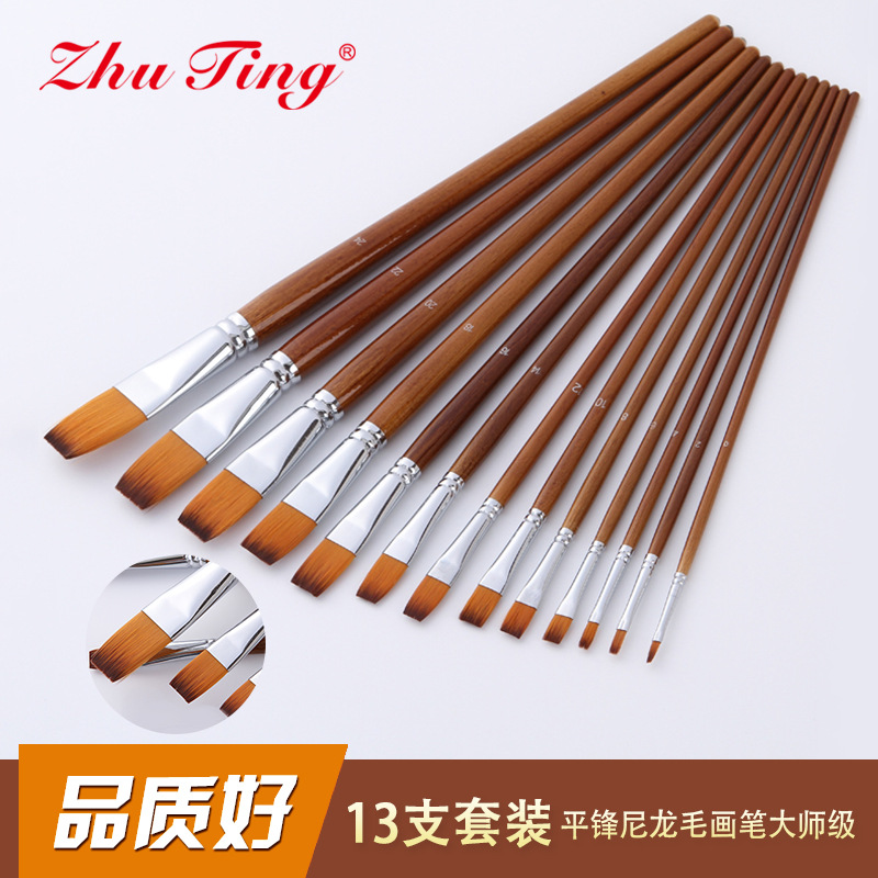 13本の平峰の2色のナイロンの毛の絵筆のアクリルの水彩画の筆の学生の絵の筆の卸売り
