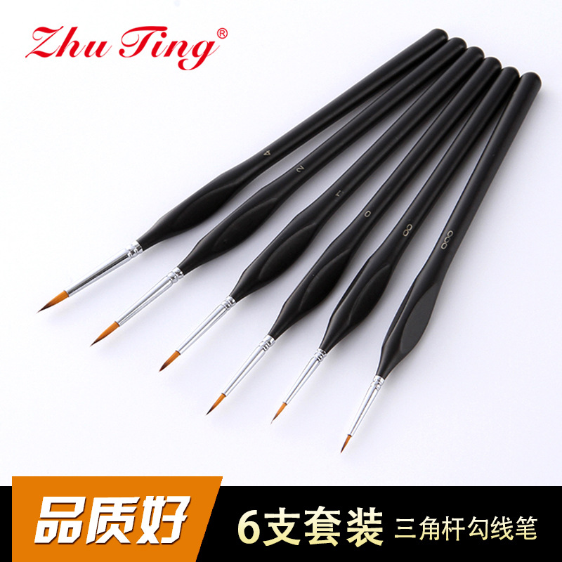 油絵絵筆絵画専用線筆6本入先端円峰ナイロン毛水彩画ペンセット美術用品