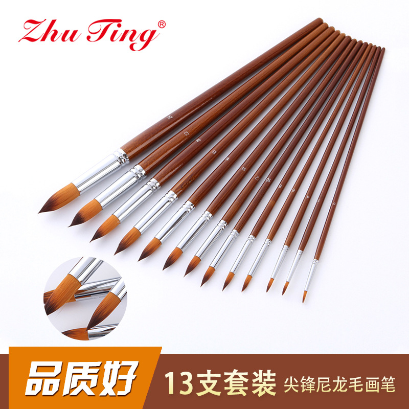 13本の尖った峰の2色のナイロンの毛の長い竿の絵筆のアクリルの水彩画の筆の学生は絵の筆の卸売りを描きます。