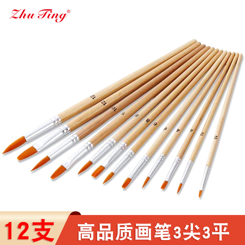 ナイロン毛水彩画ペン12本6本の先先6本の平頭水チョーク画ペン美術用品