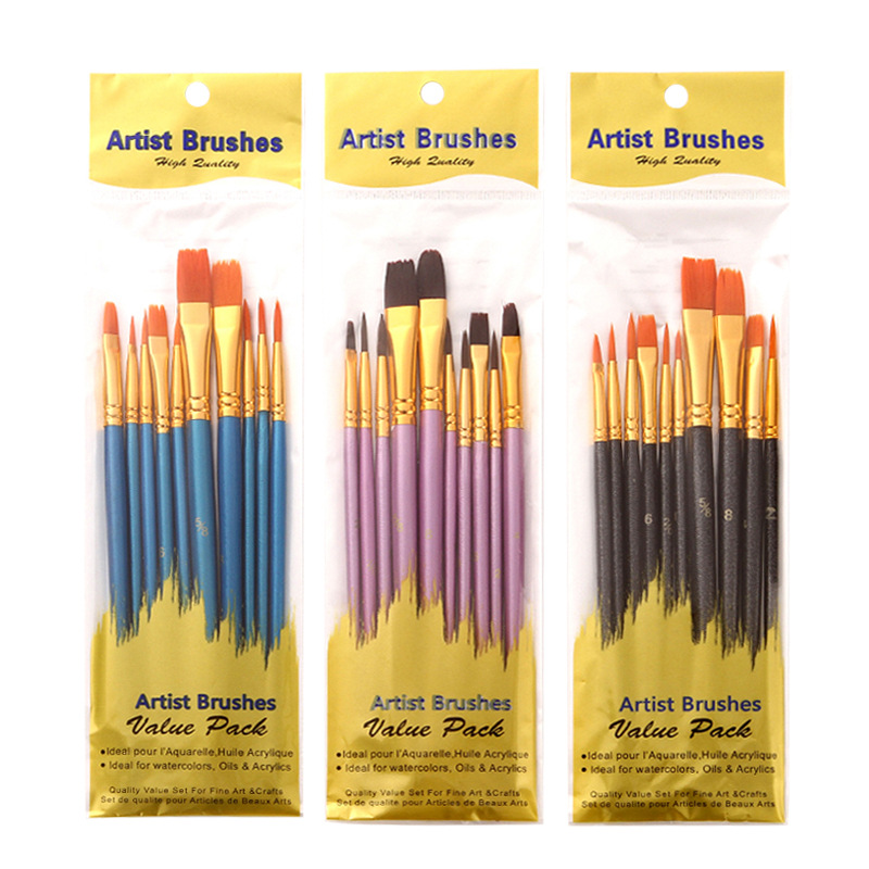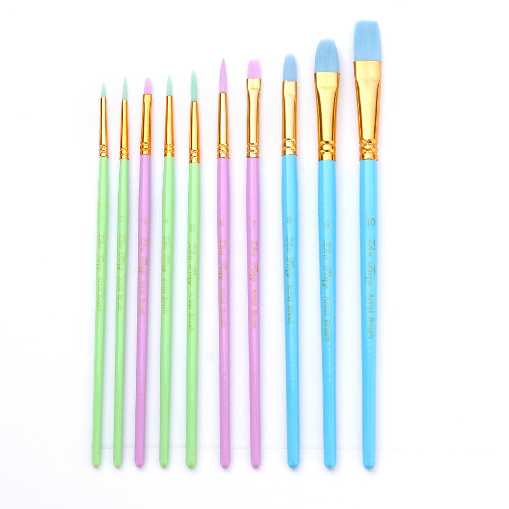 国境を越えた水彩画の水粉絵画ペンナイロン毛丙稀油絵線筆10本の対外貿易美術排筆