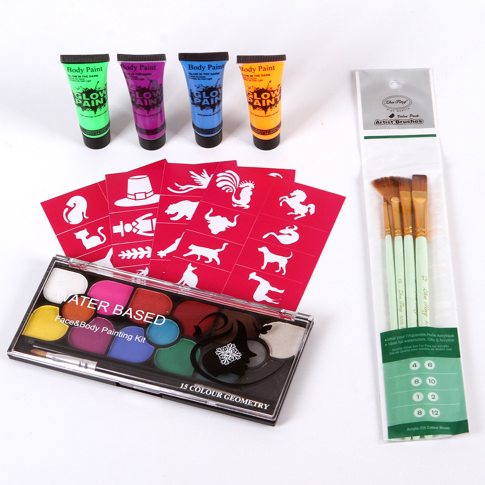 15色水溶性フェイスカラー4色10ml蛍光彩色クリーム人体彩色セット