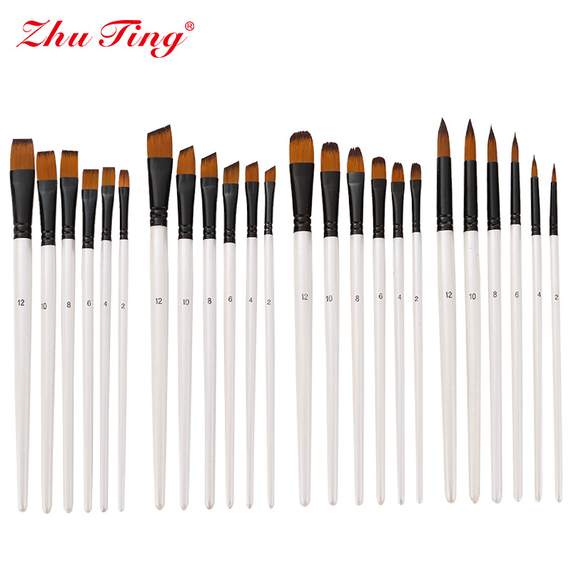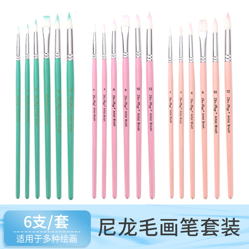 クロスボーダー6本ナイロン絵筆二色ナイロン真珠白竿爪円真珠白画筆ブラシセット