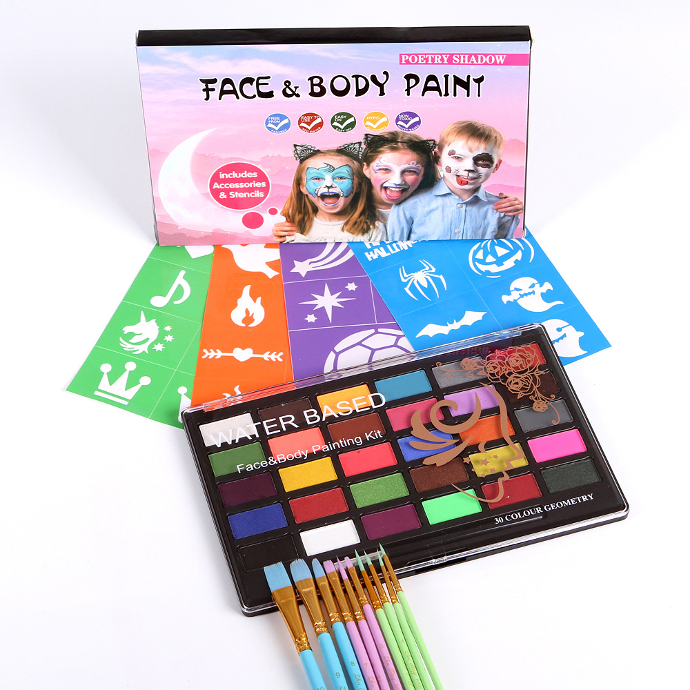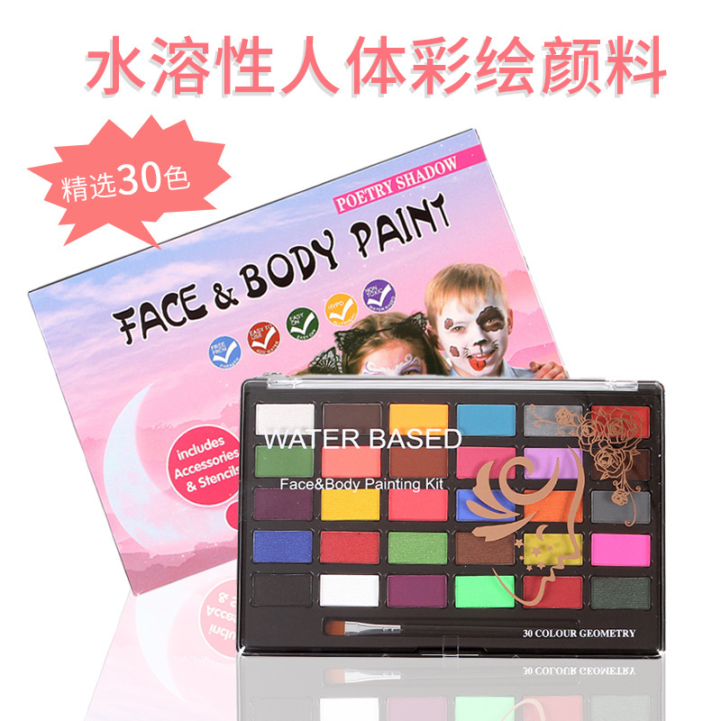 30色水溶性人体彩色絵の具ファン顔彩ハロウィーン絵の具クリスマス顔