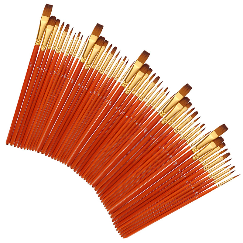 クロスボーダー人気50本透明赤絵筆2色ナイロン毛水彩絵筆多機能油絵筆