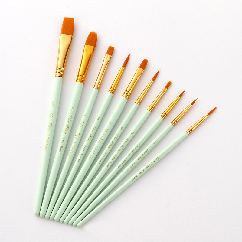 クロスボーダー10本混頭金色ナイロン毛絵筆セット水彩絵筆