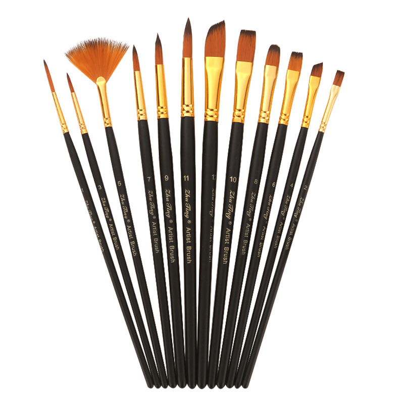 メーカー直販竹亭12本ナイロン毛油絵ペン水彩ブラシ絵の具ブラシ