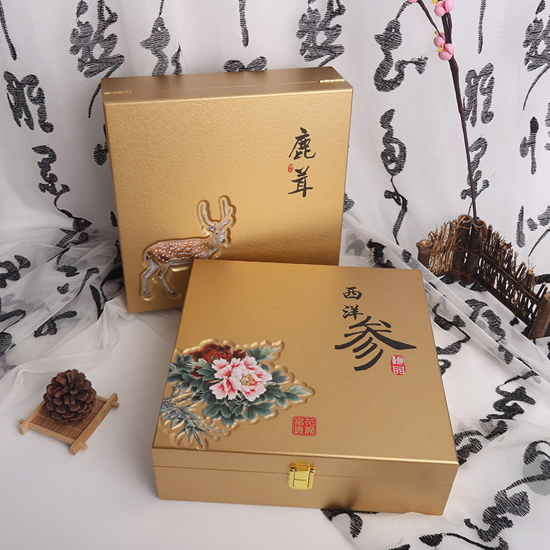 新鹿茸ギフト高級包装箱 漢方薬木箱 透かし彫り塗装フリップカバー包装箱