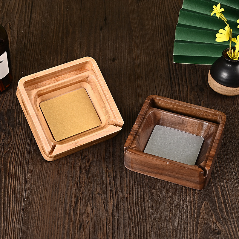 木製灰皿収納ケース黒胡桃木灰皿飛灰防止新中国式北欧現代木製四方家庭用