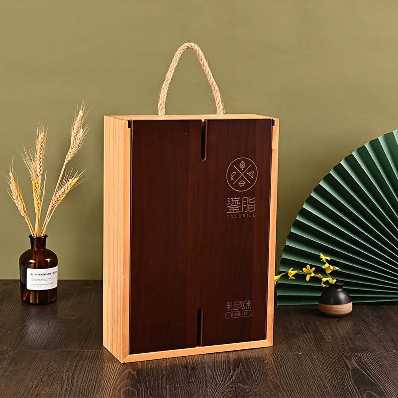 ワインのギフトボックスの中の繊維板のワインボックスの木製の2本のギフトボックスの白酒の包装箱は部品を送ってカスタマイズできます。