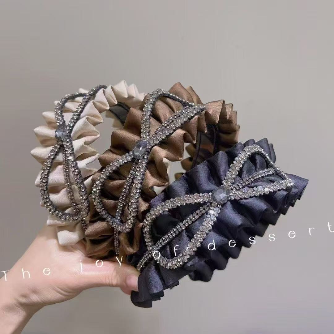 顔が見える女性向けの高頭頂部とつばの広い新しい滑り止めヘッドバンド、ラインストーンのリボン、高級ヘッドバンド、プリーツ、西洋風のヘアピン
