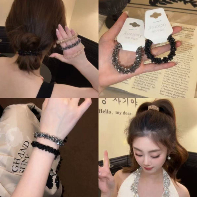 ハ・ハンハウスウェア 韓国ラインストーン ライト高級カチューシャ クラッシュアイス 高級ヘアゴム セレブヘアロープ ブレスレット 兼用