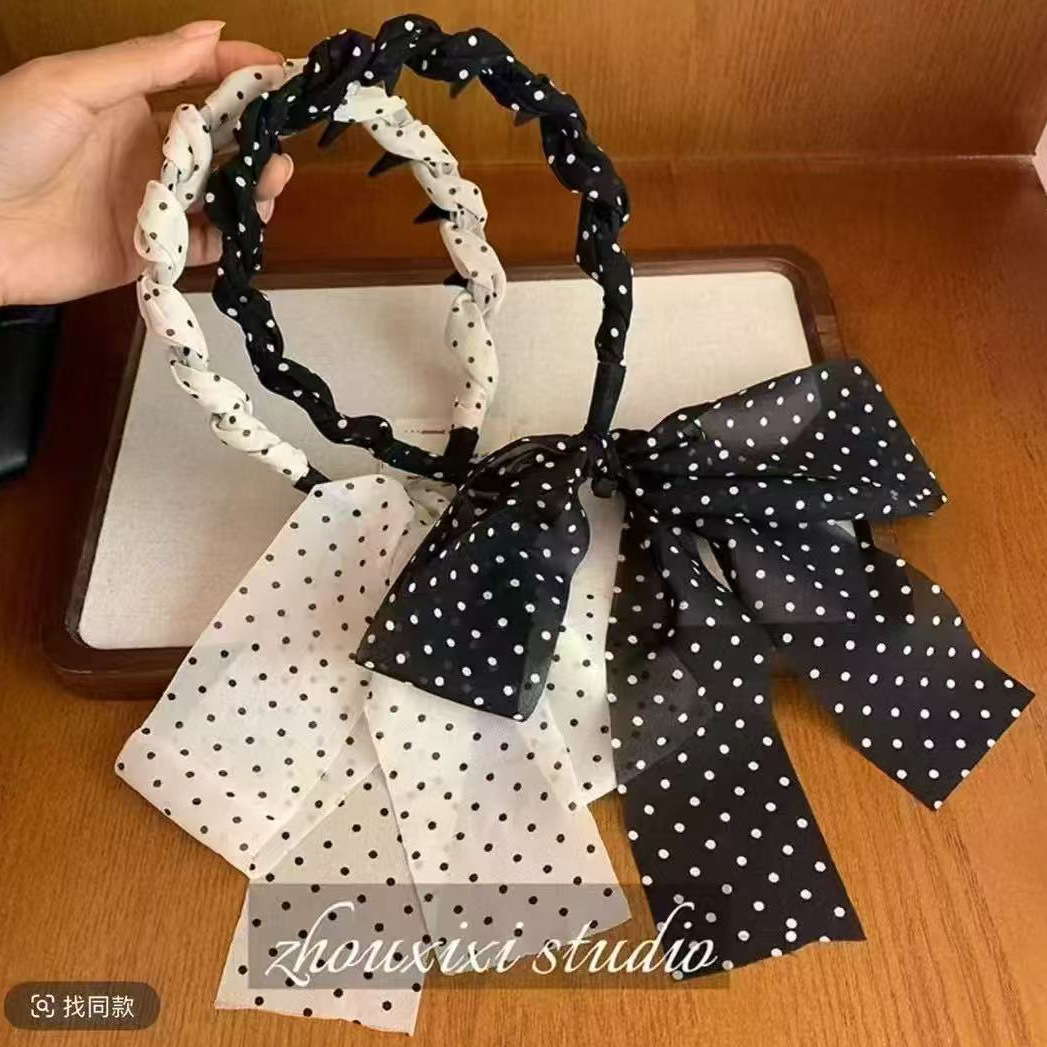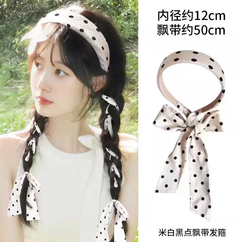 水玉模様のリボンヘッドバンド、ワンピースポニーテール編み込みリボン、新しい高頭蓋圧力ヘッドバンド、ヘッドバンド