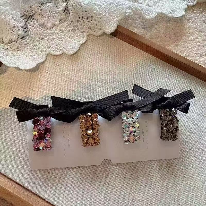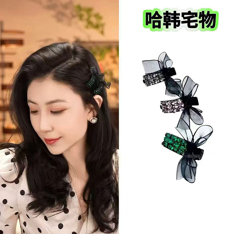 新しい蝶結びのヘアピン、ダイヤモンド付きサイド装飾、高級感のある前髪用ヘアピン、上品な雰囲気のバングヘアピン、小髪用ヘアピン、ダックビルヘアアクセサリー